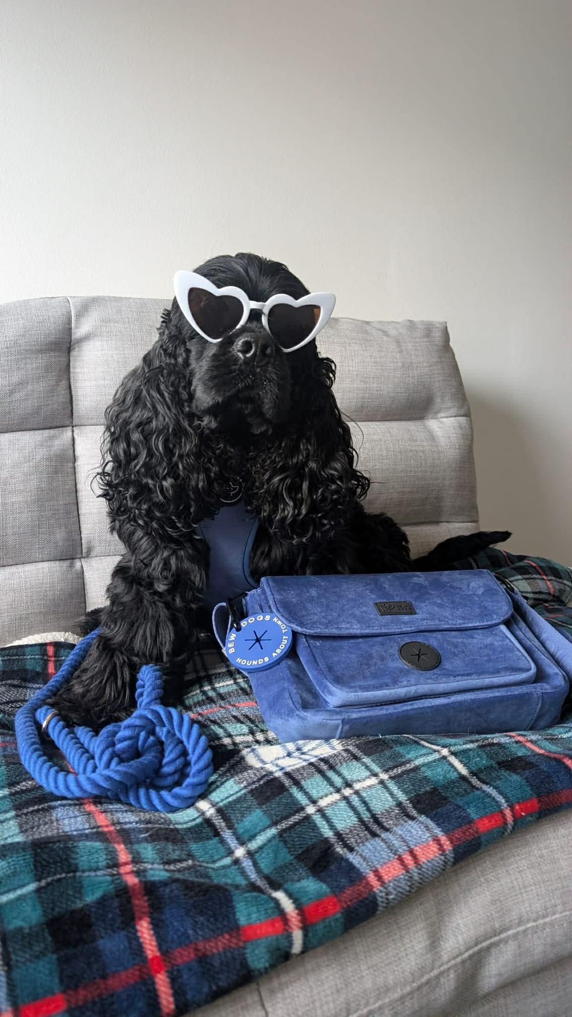 The Bew Dogs Midnight Collection is crafted to offer premium pet accessories that blend style with functionality, allowing all dog mamas to match with their furbaby. Alongside the velvet dog walking bag, the discounted bundle includes our matching blue velvet dog harness and velvet lead, designed to make every outing with your pet a stylish affair. Plus the bundle comes with a huge saving compared to buying the products separately.Midnight Collection Bundle includes:
